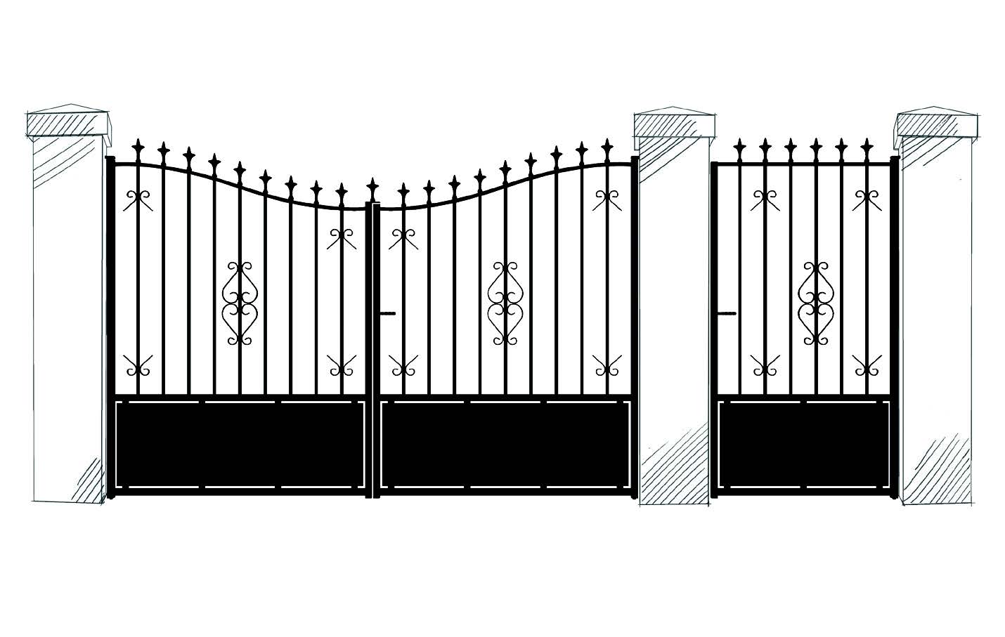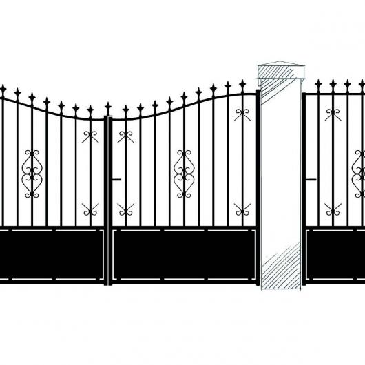 Portail livré avec les accessoires: verrou/ serrure/ poignée/ gonds/ sabit central/ crapaudine/ couvre-joint