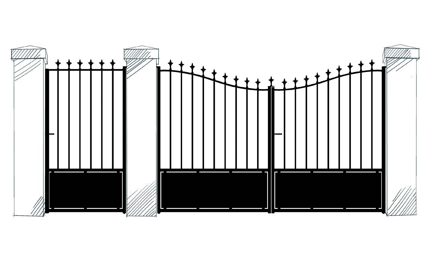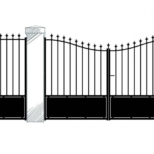 Portail livré avec les accessoires: verrou/ serrure/ poignée/ gonds/ sabit central/ crapaudine/ couvre-joint