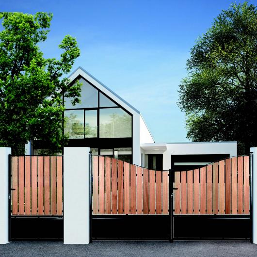 Portail livré avec les accessoires: verrou/ serrure/ poignée/ gonds/ sabit central/ crapaudine/ couvre-joint