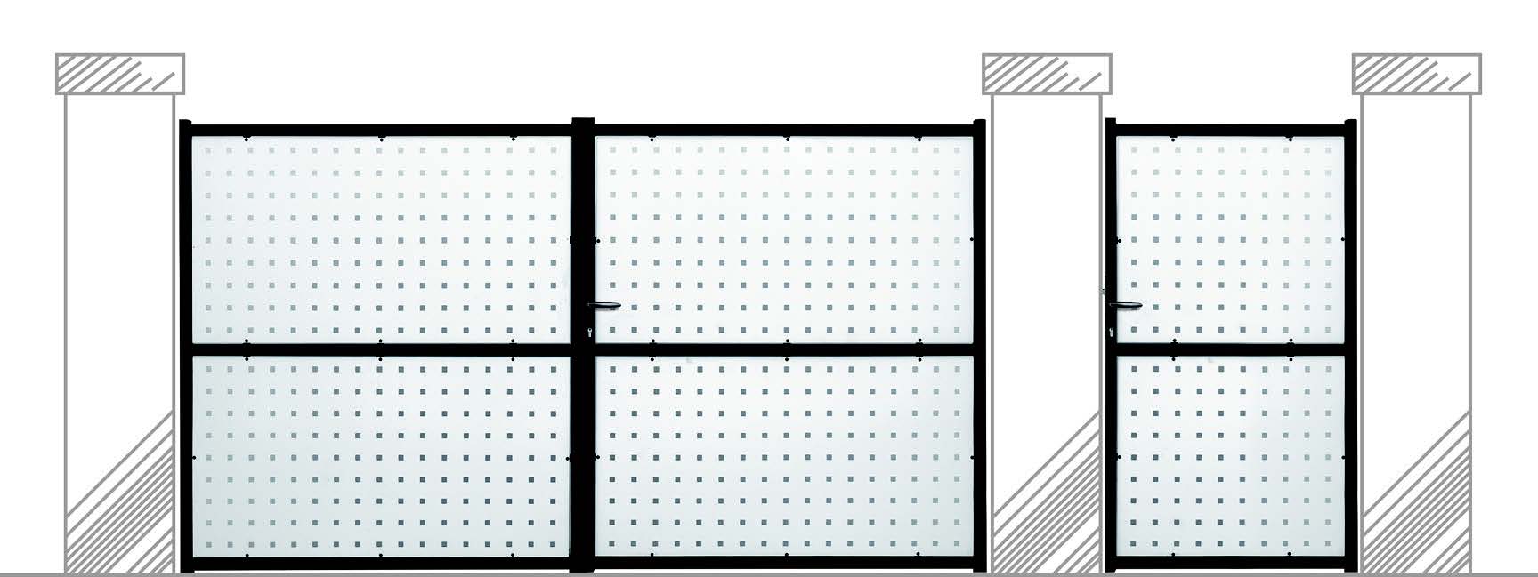 Portail livré avec les accessoires: verrou/ serrure/ poignée/ gonds/ sabit central/ crapaudine/ couvre-joint