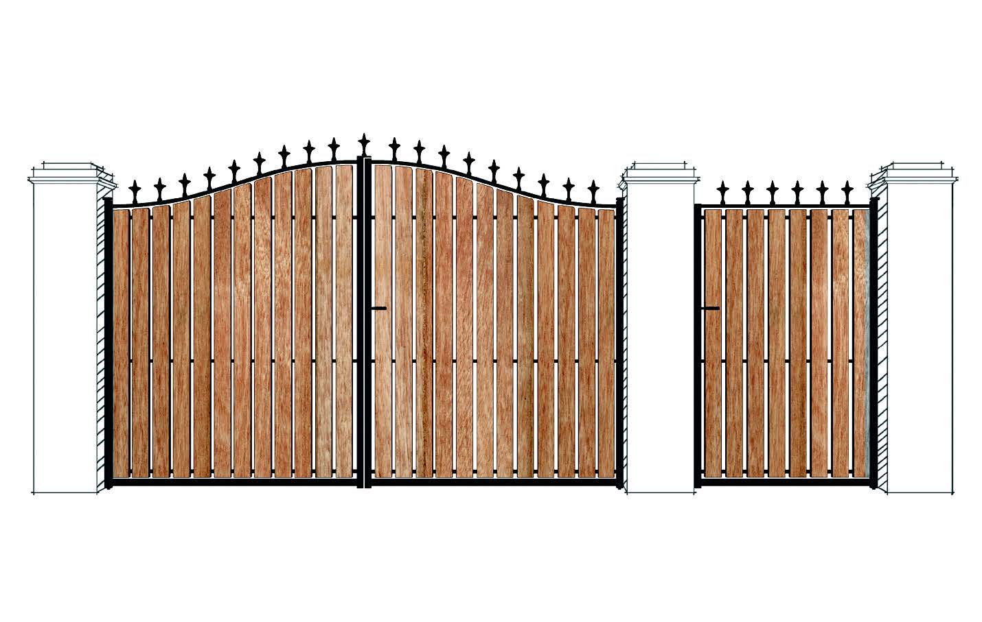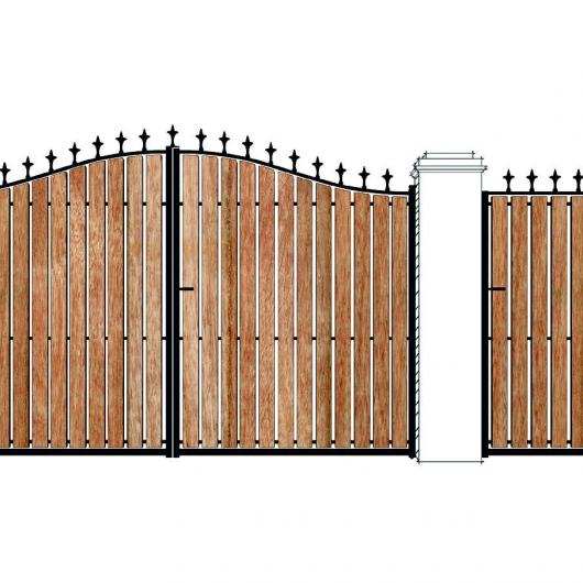 Portail livré avec les accessoires: verrou/ serrure/ poignée/ gonds/ sabit central/ crapaudine/ couvre-joint