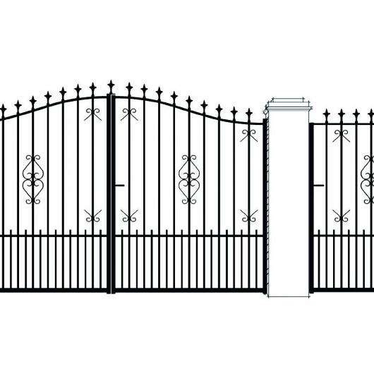 Portail livré avec les accessoires: verrou/ serrure/ poignée/ gonds/ sabit central/ crapaudine/ couvre-joint