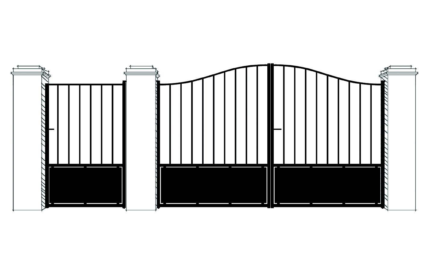 Portail livré avec les accessoires: verrou/ serrure/ poignée/ gonds/ sabit central/ crapaudine/ couvre-joint