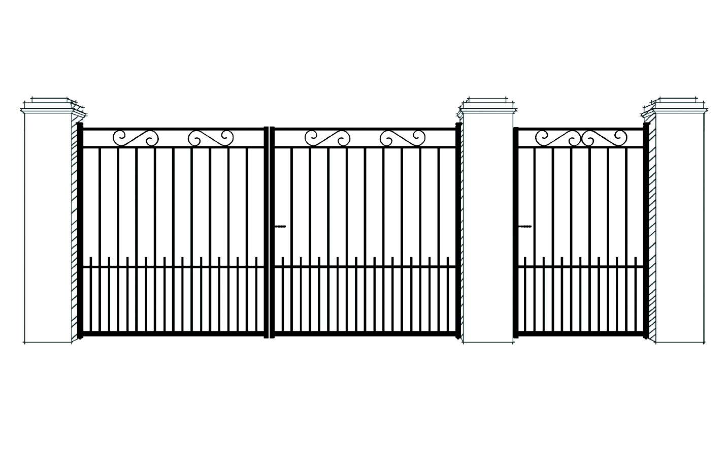 Portail livré avec les accessoires: verrou/ serrure/ poignée/ gonds/ sabit central/ crapaudine/ couvre-joint