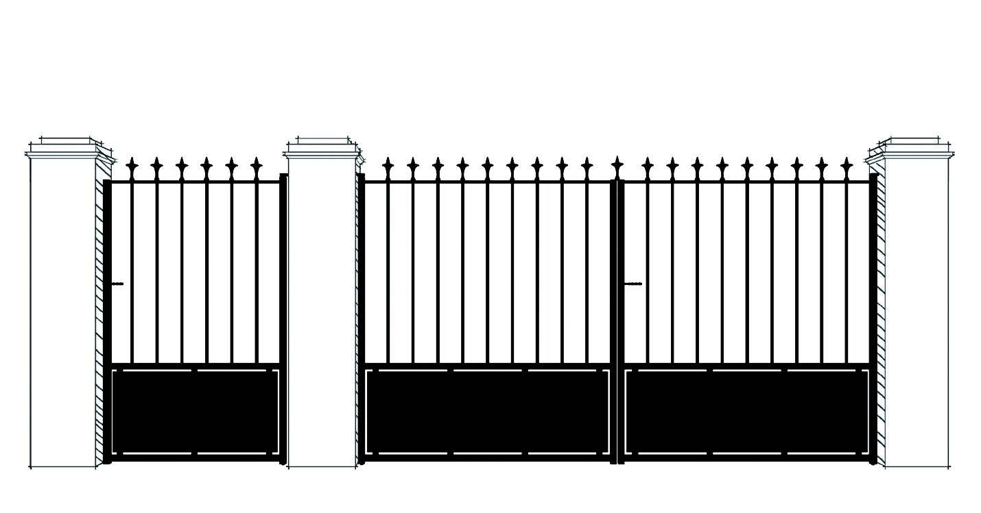 Portail livré avec les accessoires: verrou/ serrure/ poignée/ gonds/ sabit central/ crapaudine/ couvre-joint