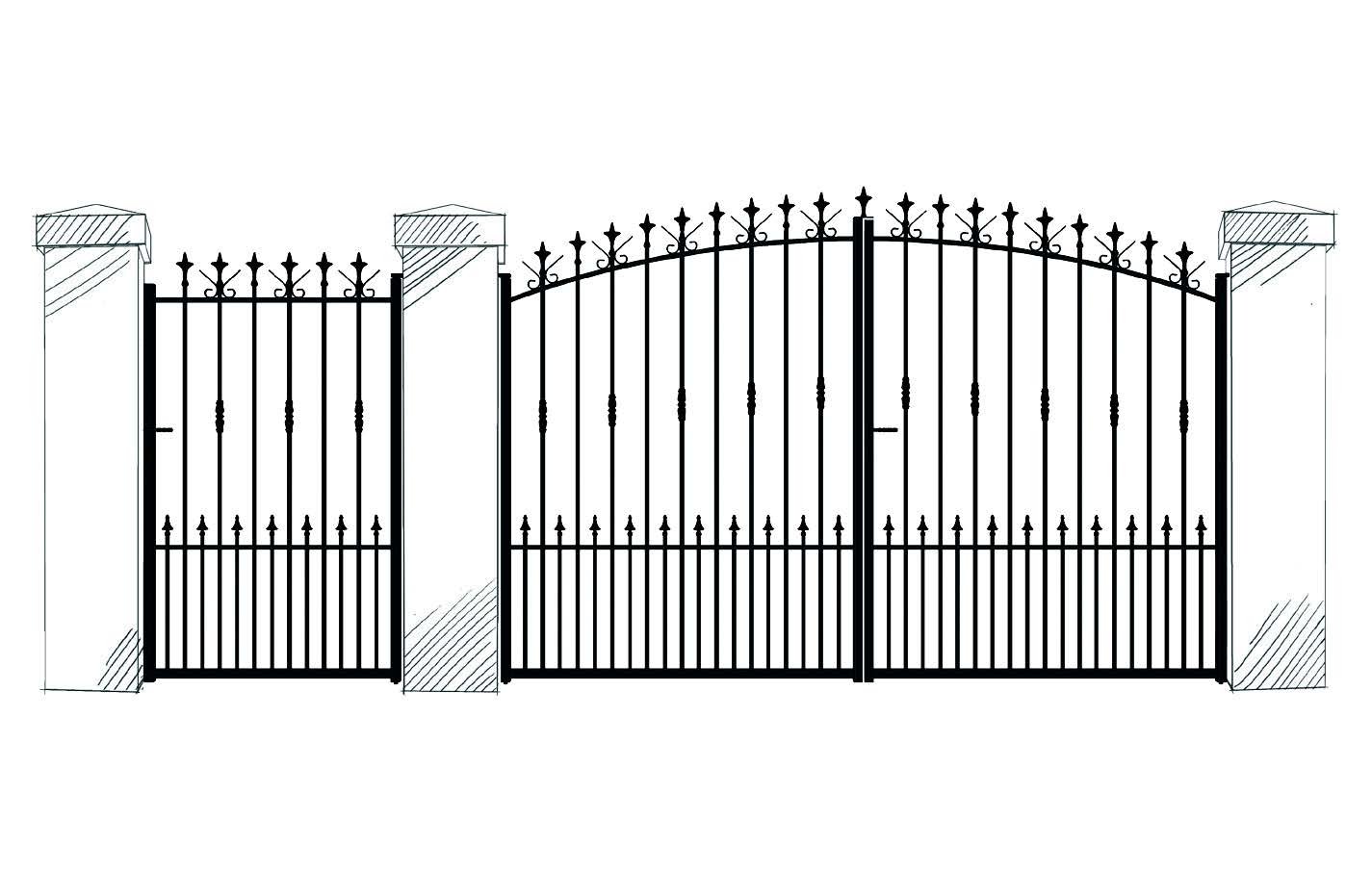 Portail livré avec les accessoires: verrou/ serrure/ poignée/ gonds/ sabit central/ crapaudine/ couvre-joint