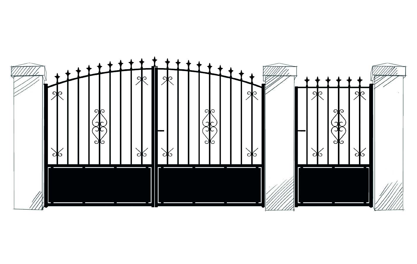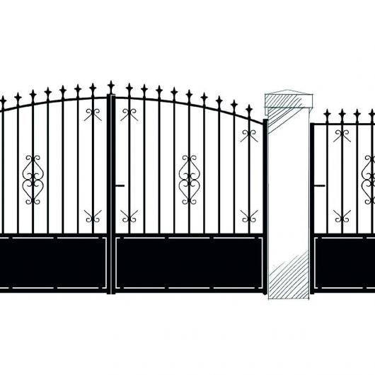 Portail livré avec les accessoires: verrou/ serrure/ poignée/ gonds/ sabit central/ crapaudine/ couvre-joint