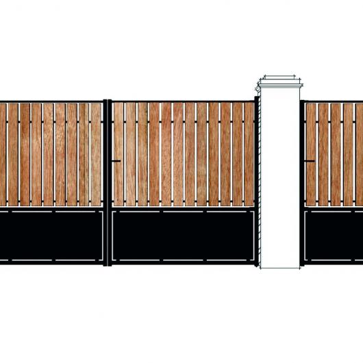 Portail livré avec les accessoires: verrou/ serrure/ poignée/ gonds/ sabit central/ crapaudine/ couvre-joint