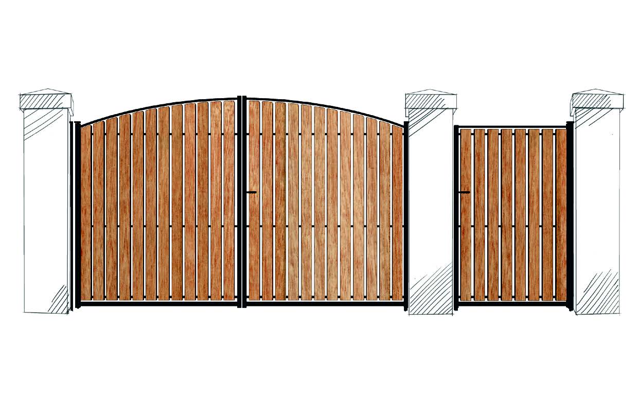 Portail livré avec les accessoires: verrou/ serrure/ poignée/ gonds/ sabit central/ crapaudine/ couvre-joint